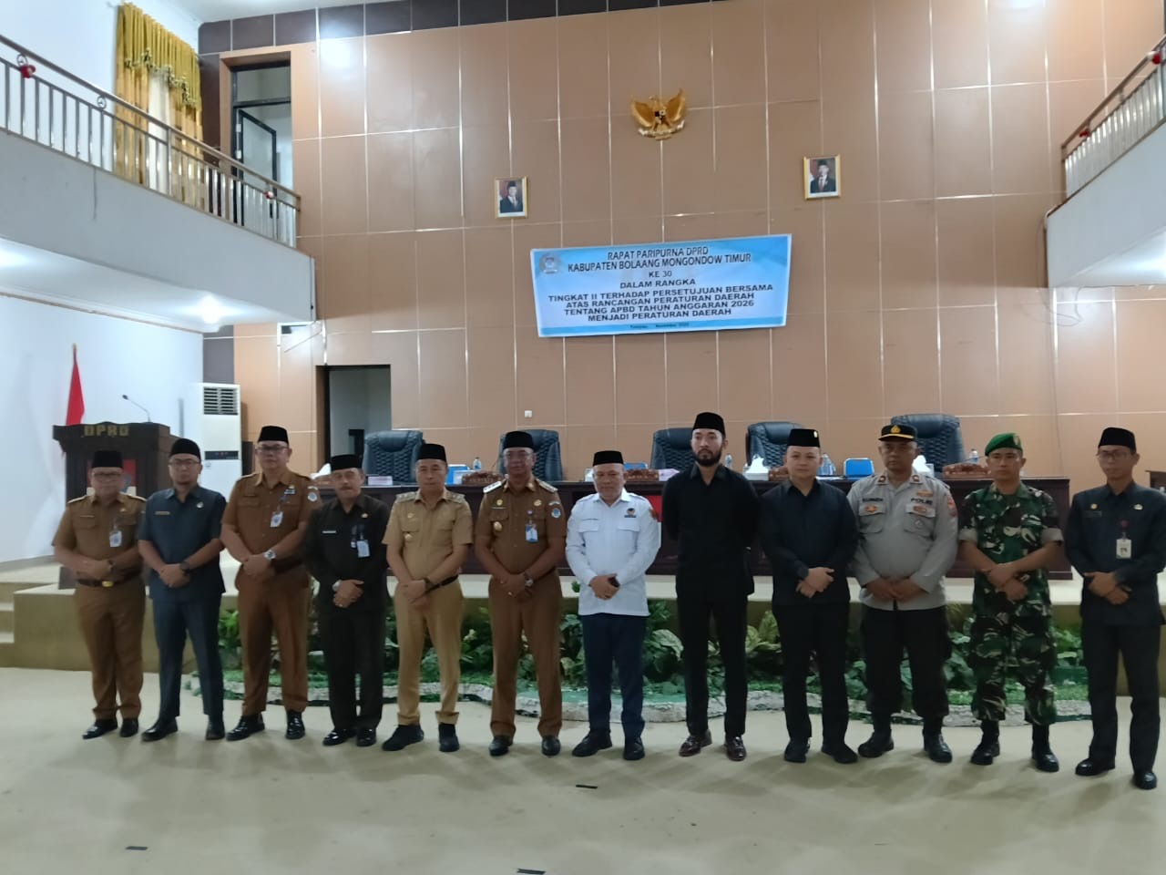 Paripurna ini dipimpin langsung oleh Ketua DPRD Samsudin Dama, didampingi Wakil Ketua Kevin Sumendap dan Medy Lensun. Hadir pula Bupati Boltim Oskar Manoppo bersama Wakil Bupati, jajaran Pemerintah Kabupaten, serta unsur Forkopimda dan pimpinan OPD.