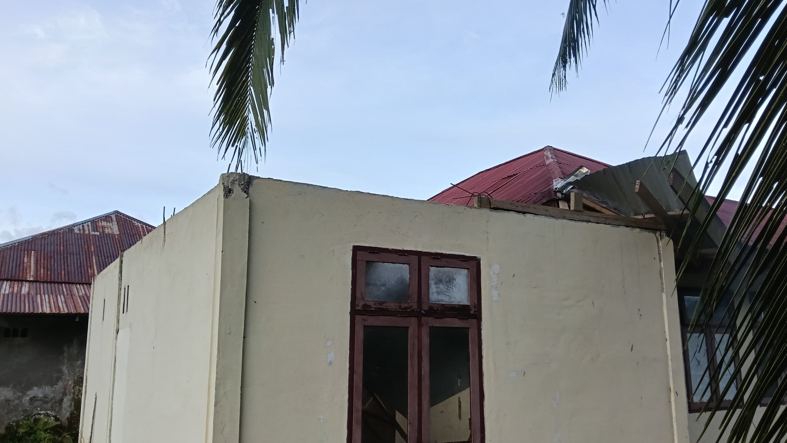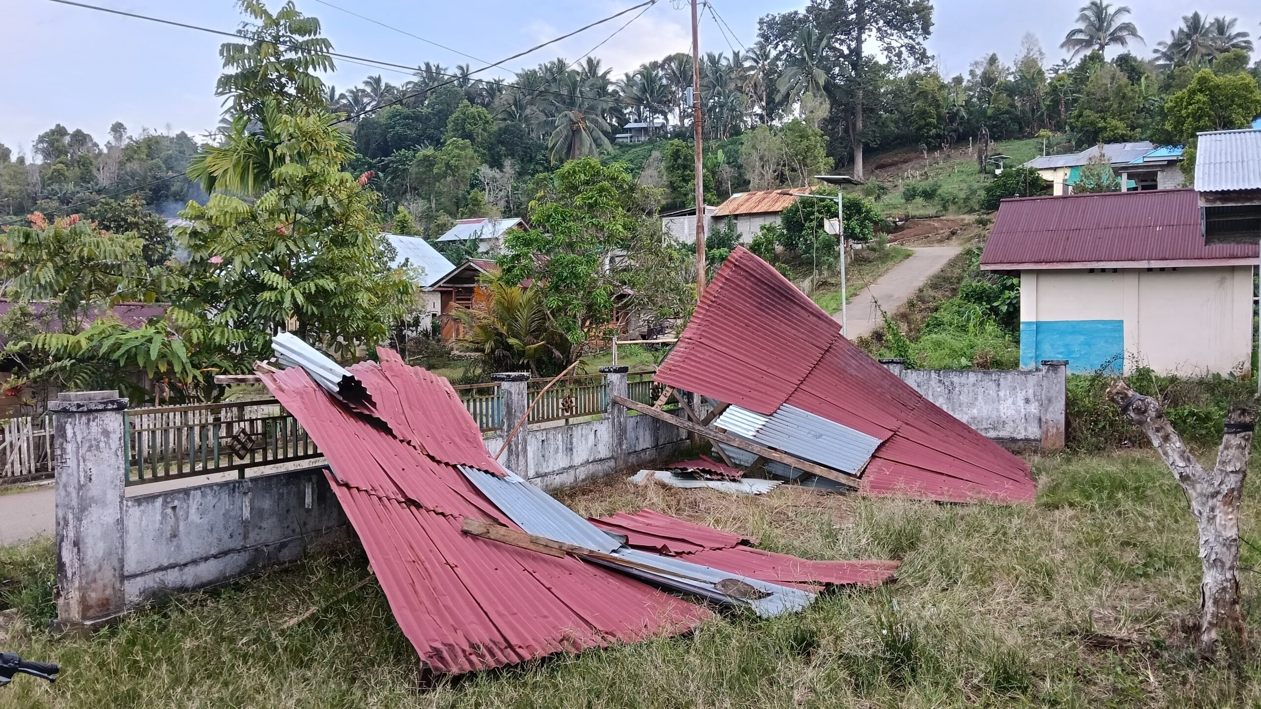 “Kerusakannya yang parah berada di ruang dapur dan gudang, sedangkan atapnya berada di depan gedung poskesdes, tiang bendera juga patah karena tertimpa atap seng yang dibawa oleh angin,” terangnya.