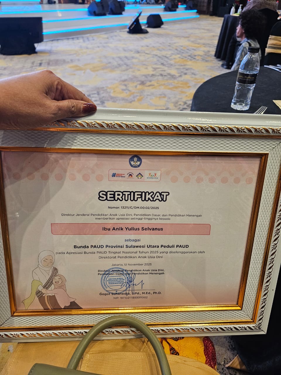 Ada pun penghargaan yang diterima oleh Bunda Anik Yulius Selvanus merupakan bentuk apresiasi atas dedikasi dan komitmen Bunda PAUD Sulut dalam mendukung tumbuh kembang anak usia dini di Provinsi Sulawesi Utara.