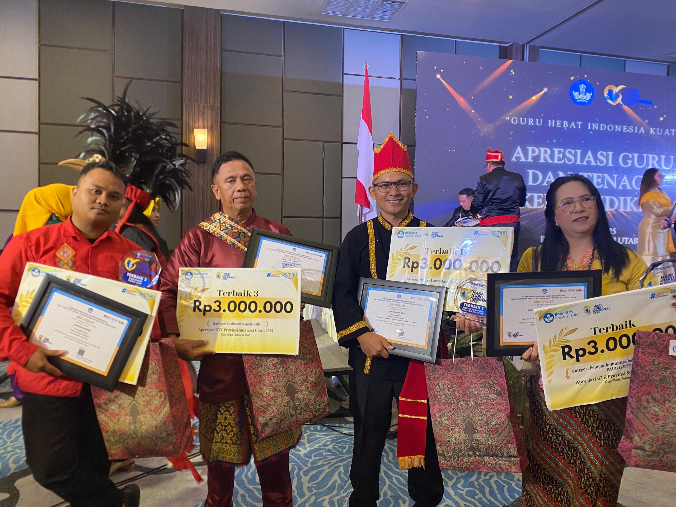 Dalam ajang Apresiasi Penghargaan Guru dan Tenaga Kependidikan (GTK) tingkat Provinsi Sulawesi Utara, yang digelar oleh Balai Guru dan Tenaga Kependidikan (BGTK) Sulut di Tateli Resort and Convention, Manado, Sabtu (8/11/2025), para pendidik asal Bolsel sukses mengharumkan nama daerah dengan meraih sejumlah penghargaan bergengsi.