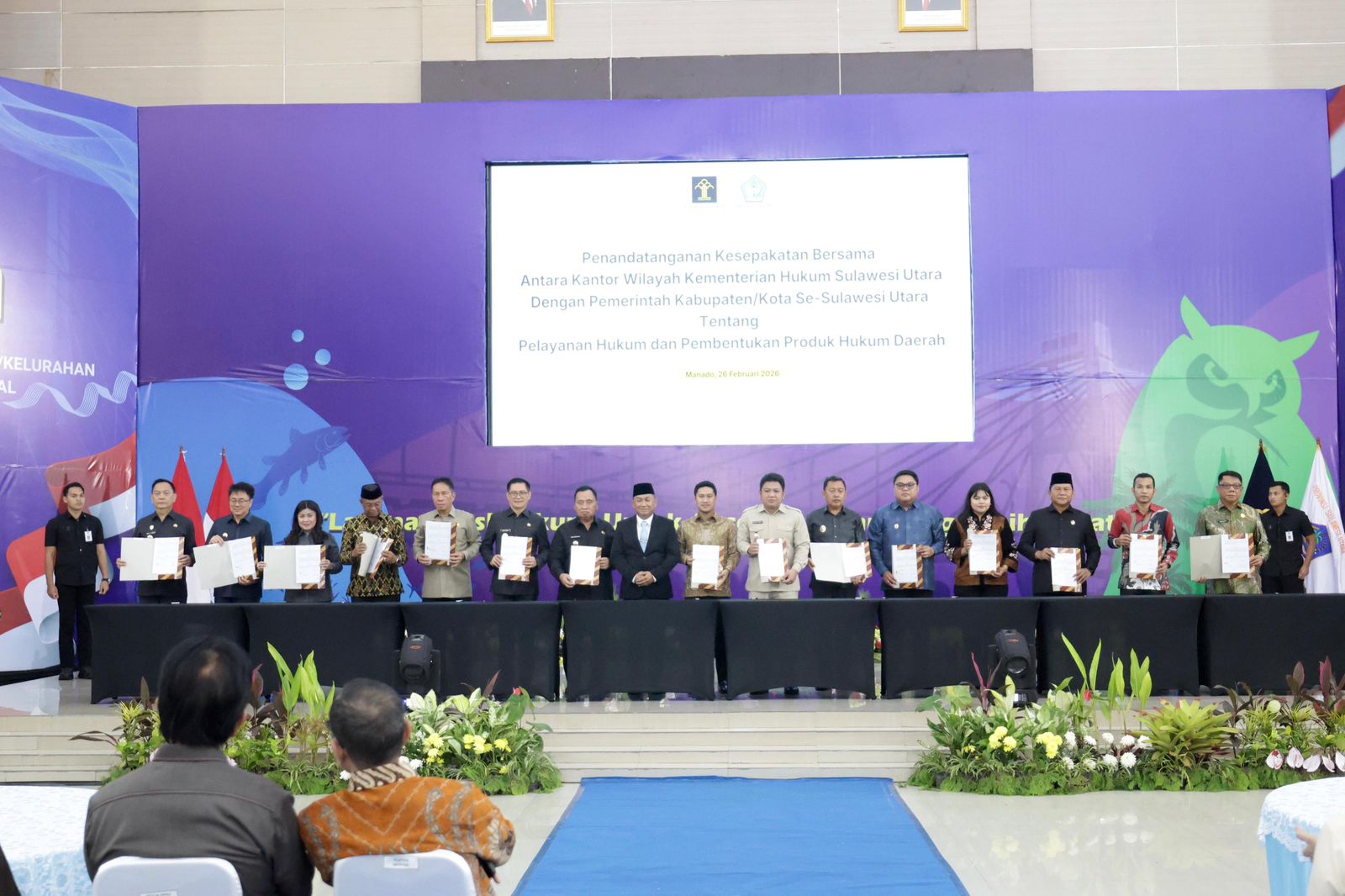 Kegiatan tersebut juga dirangkaikan dengan penandatanganan nota kesepahaman (MoU) antara Kantor Wilayah Kementerian Hukum Sulawesi Utara dan pemerintah kabupaten/kota se-Sulawesi Utara.