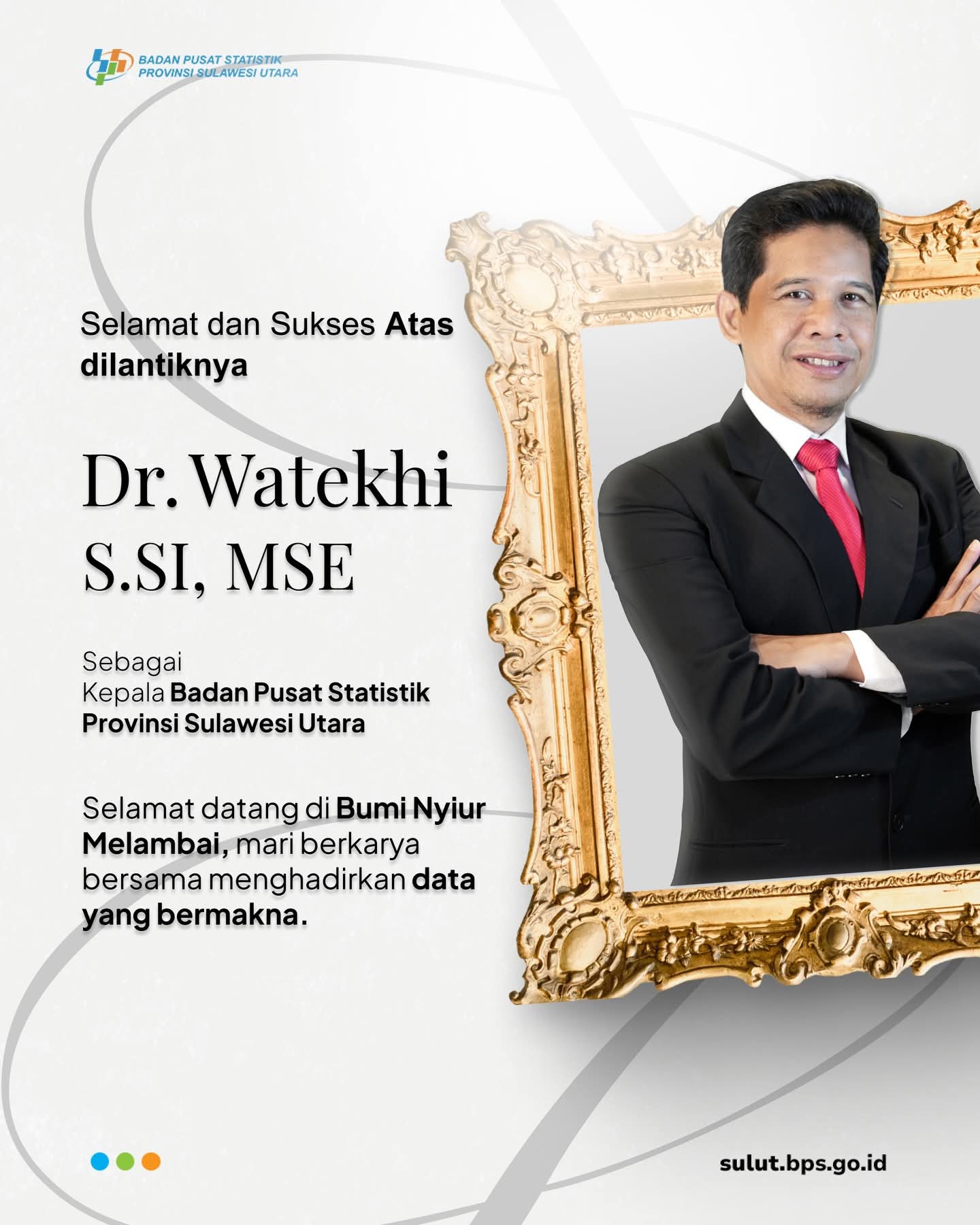 Pucuk pimpinan BPS Provinsi Sulut yang sebelumnya dijabat oleh Agus Sudibyo M.Stat diganti oleh DR Watekhi S.Si, MSE. Agus Sudibyo sendiri digeser memimpin BPS Provinsi Sulut.