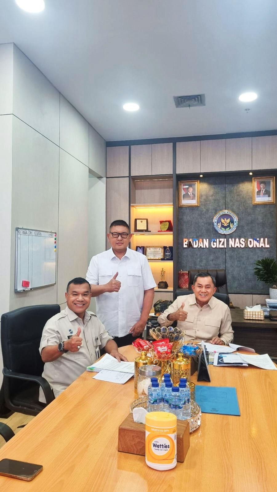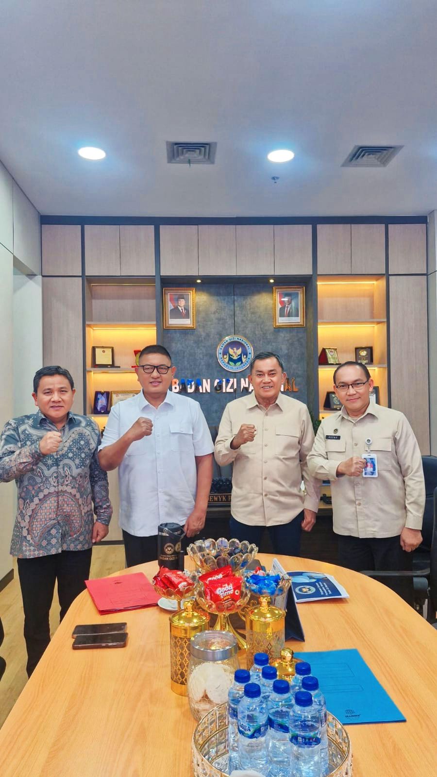 Dalam kunjungan kerja tersebut, Wakil Bupati Minahasa Selatan Brigjen TNI (Purn.) Theodorus Kawatu, S.I.P., yang juga menjabat sebagai Ketua Satuan Tugas Pelaksanaan Program Makanan Bergizi Gratis Kabupaten Minahasa Selatan, diterima oleh Wakil Kepala Badan Gizi Nasional Republik Indonesia Letjen TNI (Purn.) Lodewyk Pusung; Inspektur Utama Badan Gizi Nasional Republik Indonesia Brigjen TNI (Purn.) Jimmy Alexander Adirman, S.E.; serta Tenaga Ahli Pimpinan Bidang Manajemen Sumber Daya Manusia Kolonel TNI (Purn.) Dr. Drs. George Royke Deksino, M.Han., CIQnR.