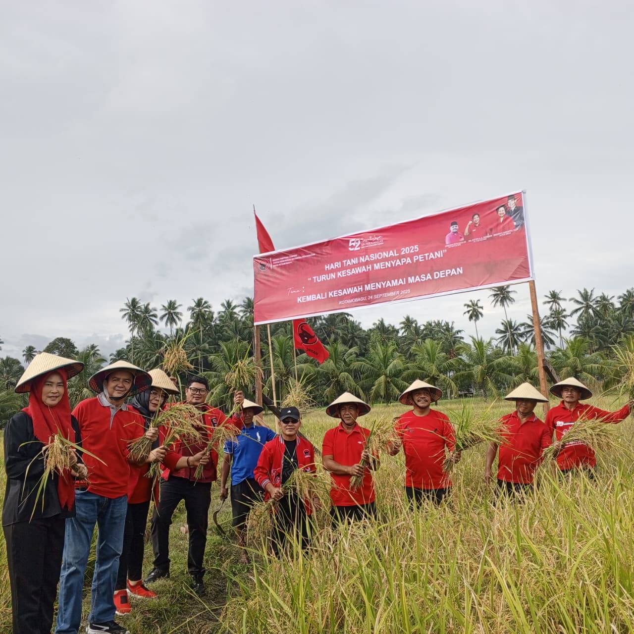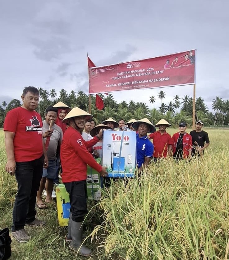 Guna menindaklanjuti hasil Rakernas IV tersebut, jajaran Dewan Perwakilan Cabang (DPC) PDIP Kotamobagu di bawah komando Ketua DPC PDIP Kotamobagu, Adrianus Mokoginta SE turun ke sawah di Desa Bungko, Kecamatan Kotamobagu Selatan, Rabu 24 September 2025.