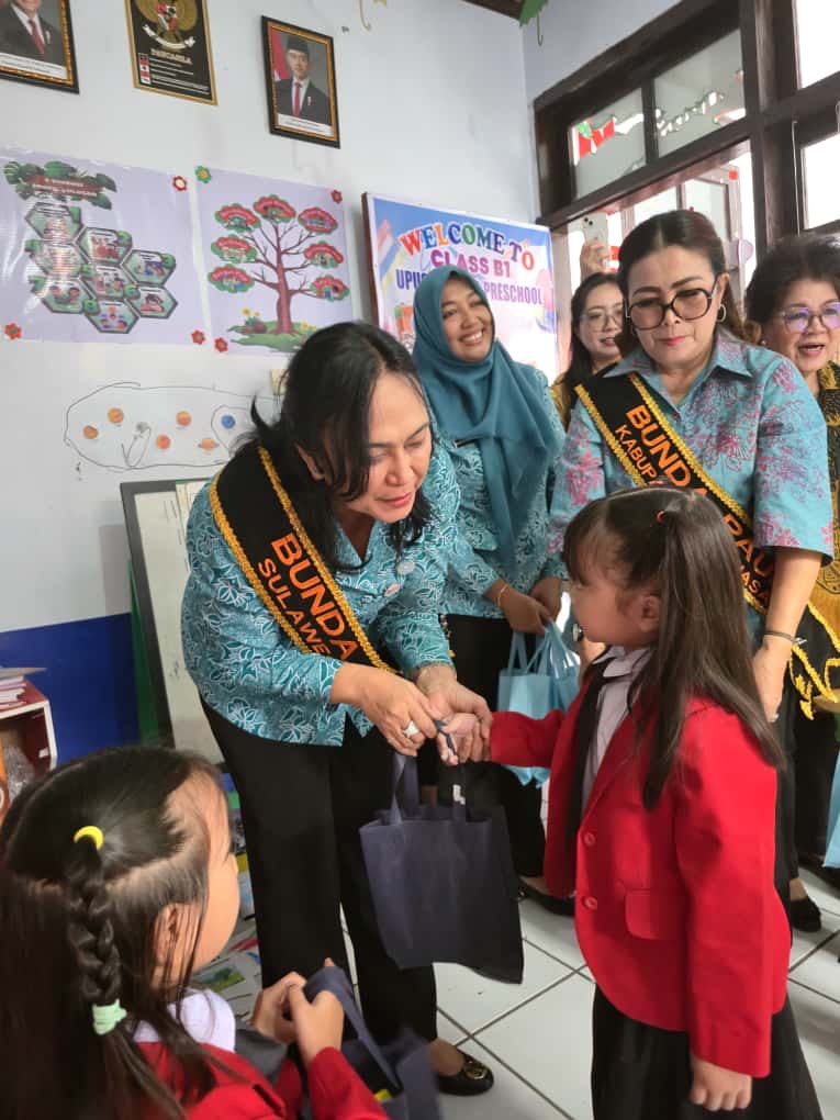 Seperti pada kunjungan Bunda PAUD Sulawesi Utara, Ny. Anik Yulius Selvanus, yang juga merupakan Ketua Tim Penggerak PKK Provinsi Sulut di sejumlah lembaga Pendidikan Anak Usia Dini (PAUD) di tiga daerah, yakni TK Happy Land Kota Manado, TK Happy Holly Kids Kota Tomohon, dan TK Upus Ni Mama Kabupaten Minahasa, Senin 13 Oktober 2025.