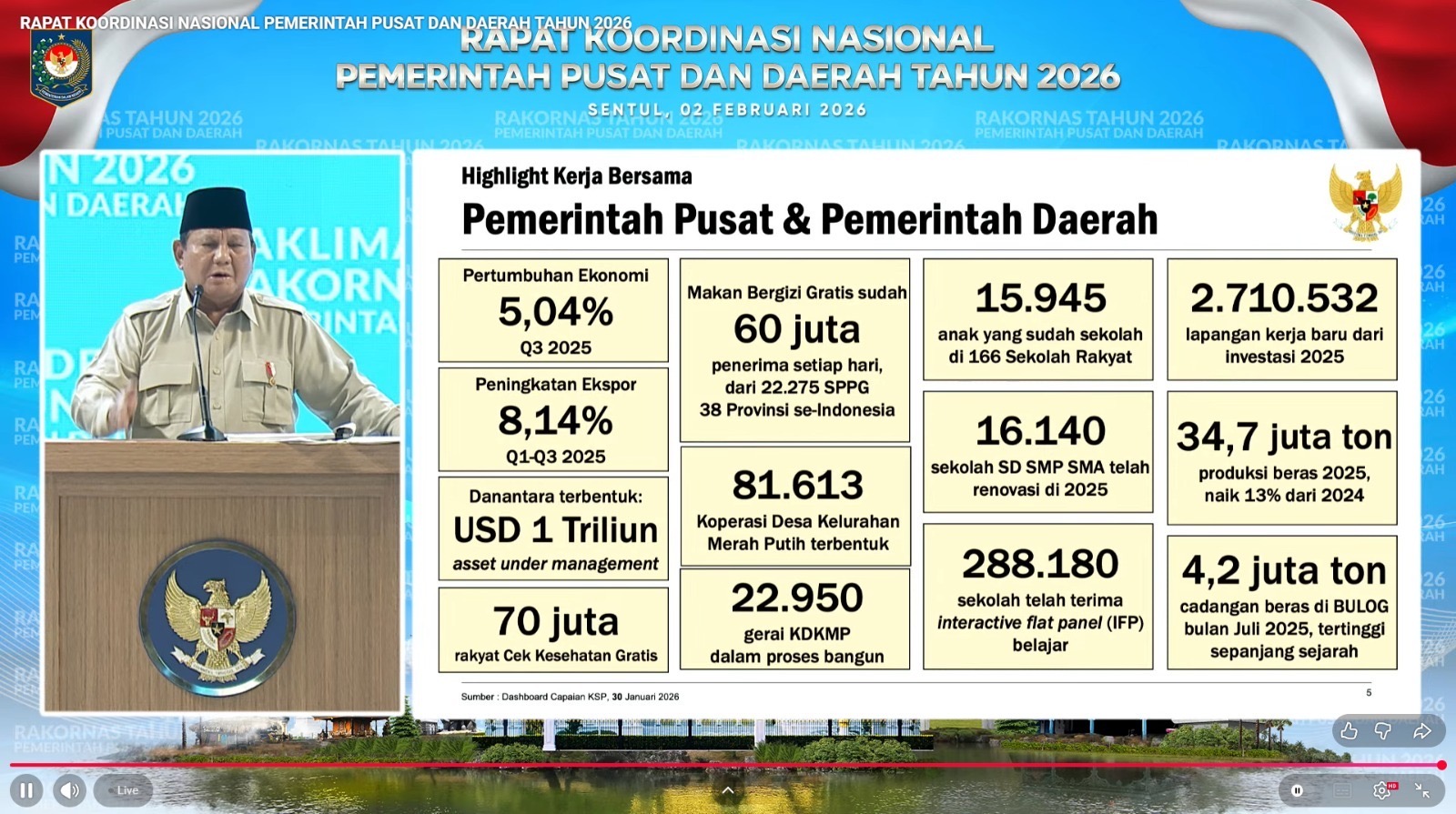 “Pemerintah pusat dan daerah harus berjalan dalam satu irama, satu visi, dan satu tujuan, demi kepentingan rakyat dan masa depan Indonesia,” tegas Presiden.